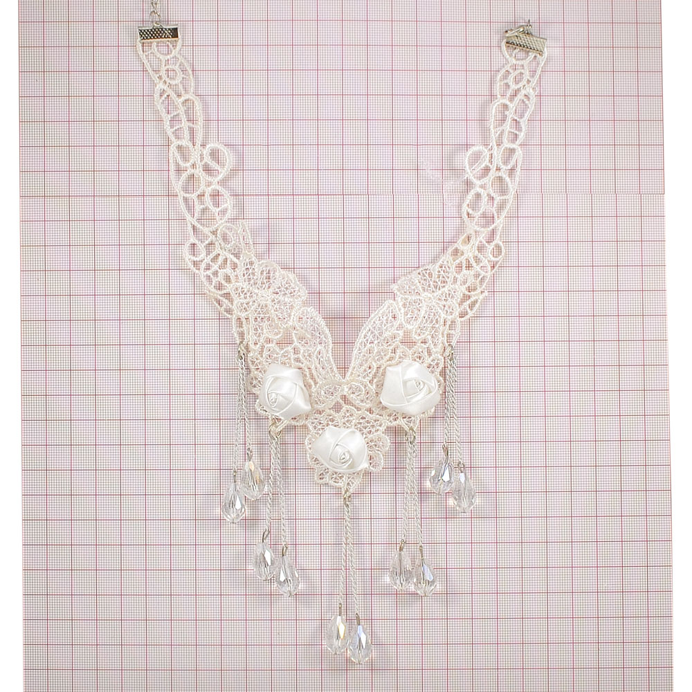 Воротник A87 белый треугольник 3 белые розочки, цепи NIK, прозрачные бусины, шт