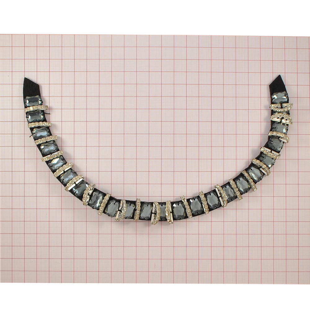 Воротник BS-006 20*13см серые камни, кристалл в металле, NIKEL, шт