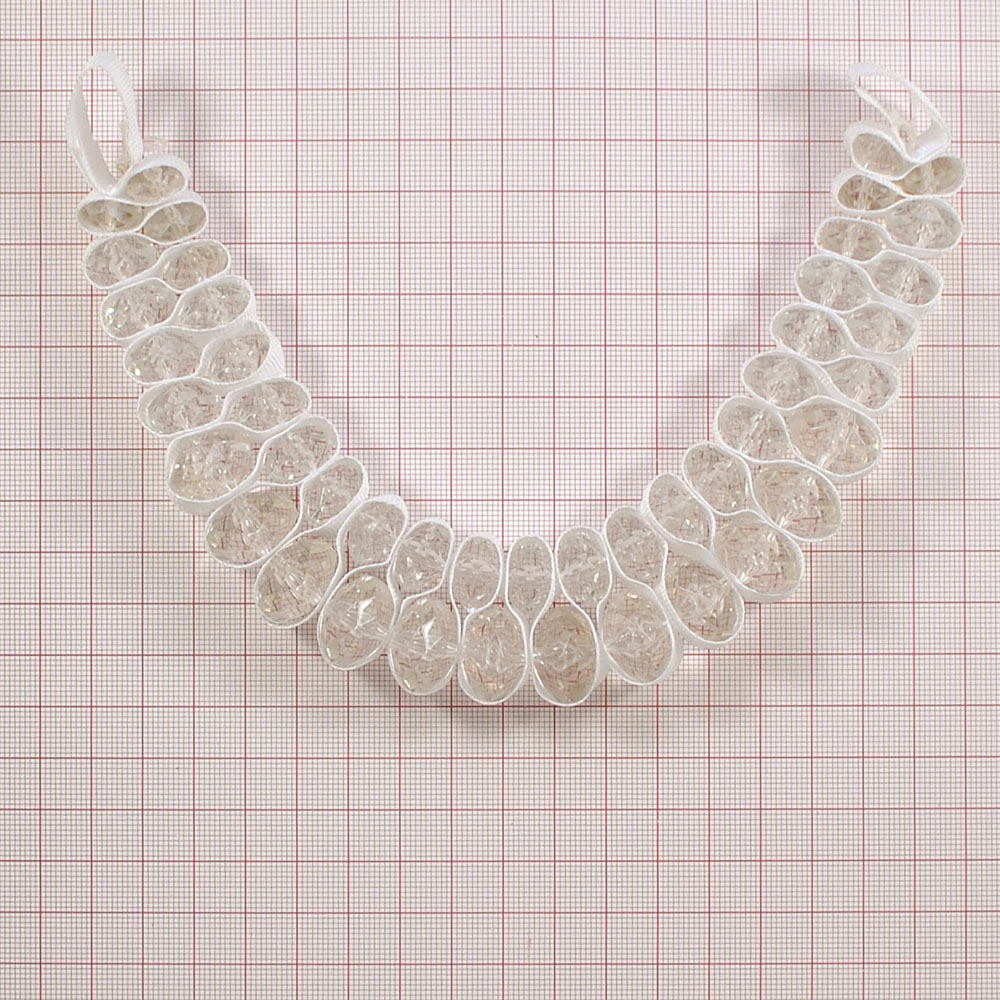 Воротник BS-007 белый 19*11см прозрачные камни в ленте, Петли, шт