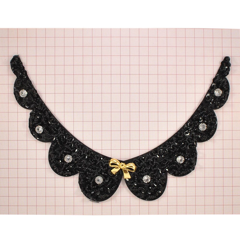 Воротник BS-015 Волны 19*16см черный бисер, золотой бант, белые камни, шт