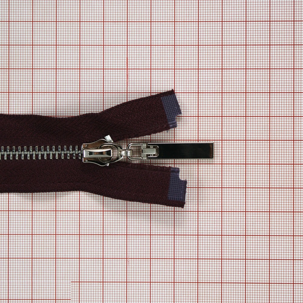 Змейка металлическая №5 85см, О/Е, Nickel и бордовая ткань, шт