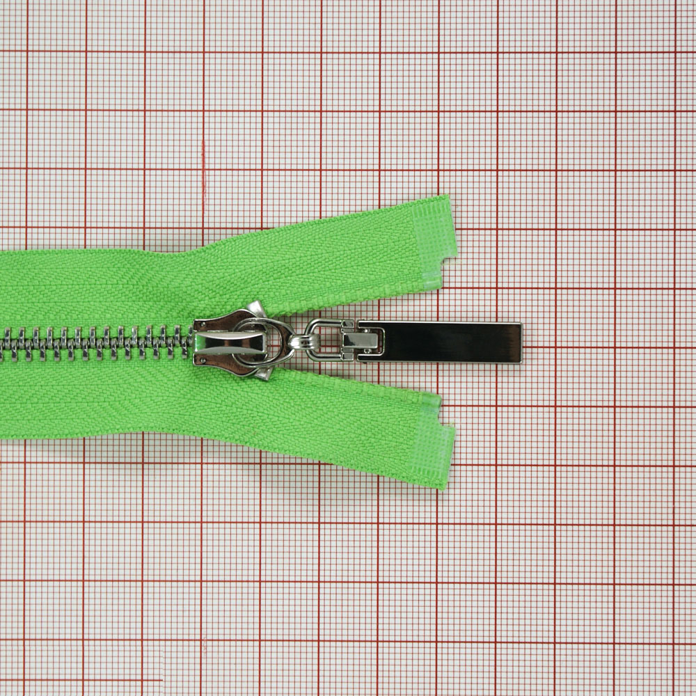 Змейка металлическая №5 85см, О/Е, Nickel и салатовая ткань, шт